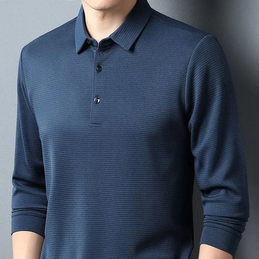 SHiONFA Men's Waffle Long Sleeve Solid T-shirt Elasticity Leisure Autumn Clothing Comfy Turn Down Collar Casual Polo Shirts 4XL