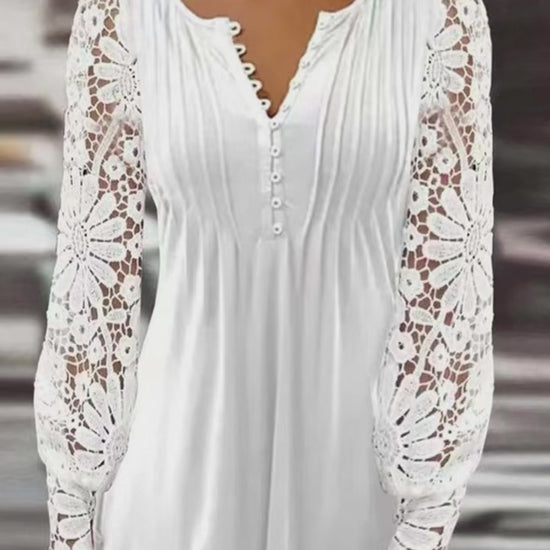Lace Long Sleeve Pleated Blouse Women Sexy V Neck Hollow Out Button T Shirts Lady Spring Autumn Clothes Tops
